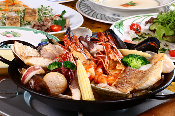 素材の旨みがぎゅっとつまった世界三大料理、パエリア。 色鮮やかなサフランライスの華やかな香りと、魚介の豊かな風味に食欲をそそられます。 ぷりぷりのエビや旨みたっぷりのイカやムール貝、浜名湖や近海であがった新鮮な海の幸をふんだんに使ったパエリアは、一口ごとに海の香りが口いっぱいに広がります。 見た目も華やかで、目でも楽しめる自慢の逸品をご堪能ください。