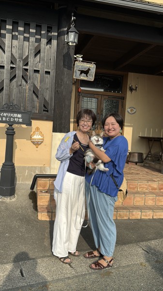 早朝の浜名湖でのお散歩はとても気持ちが良さそうで、